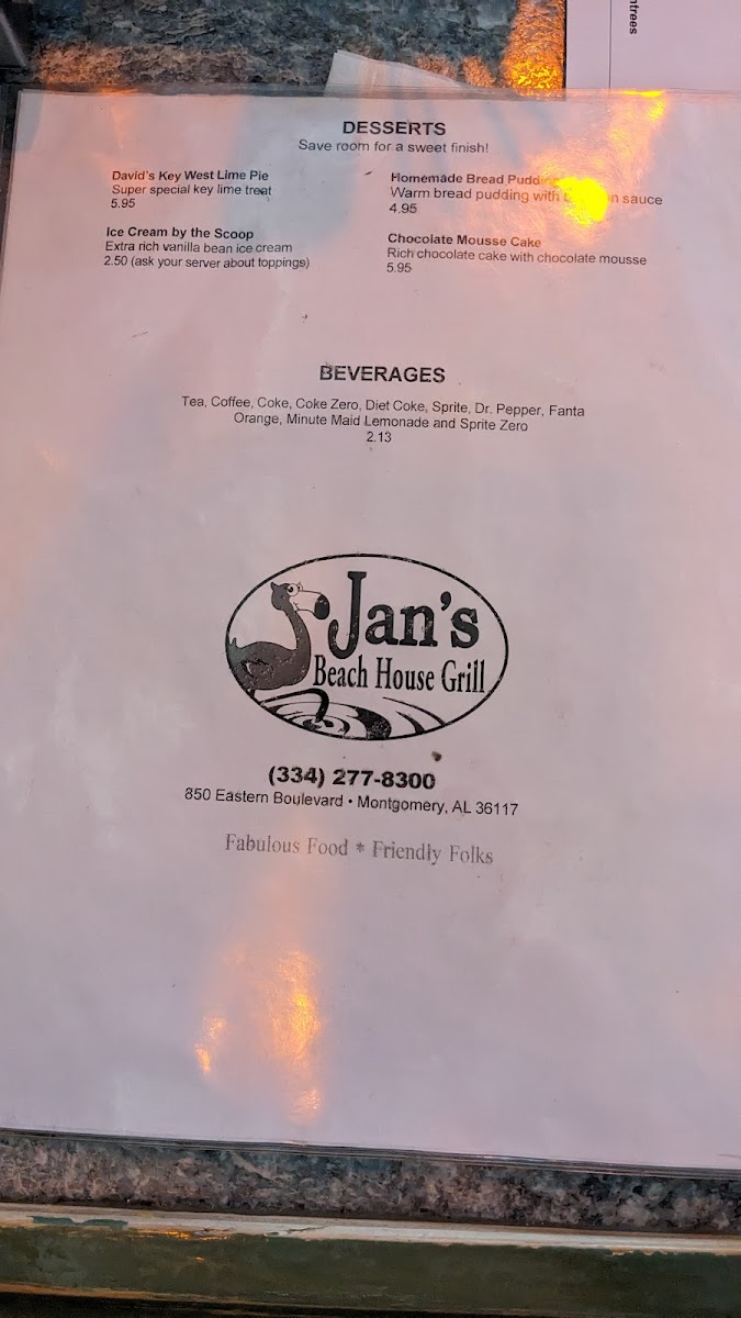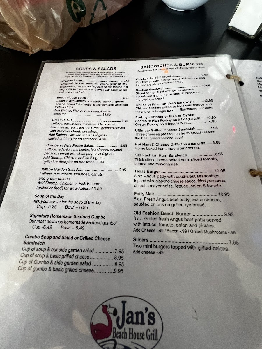Dive into Jan's Beach House Grill Menu!